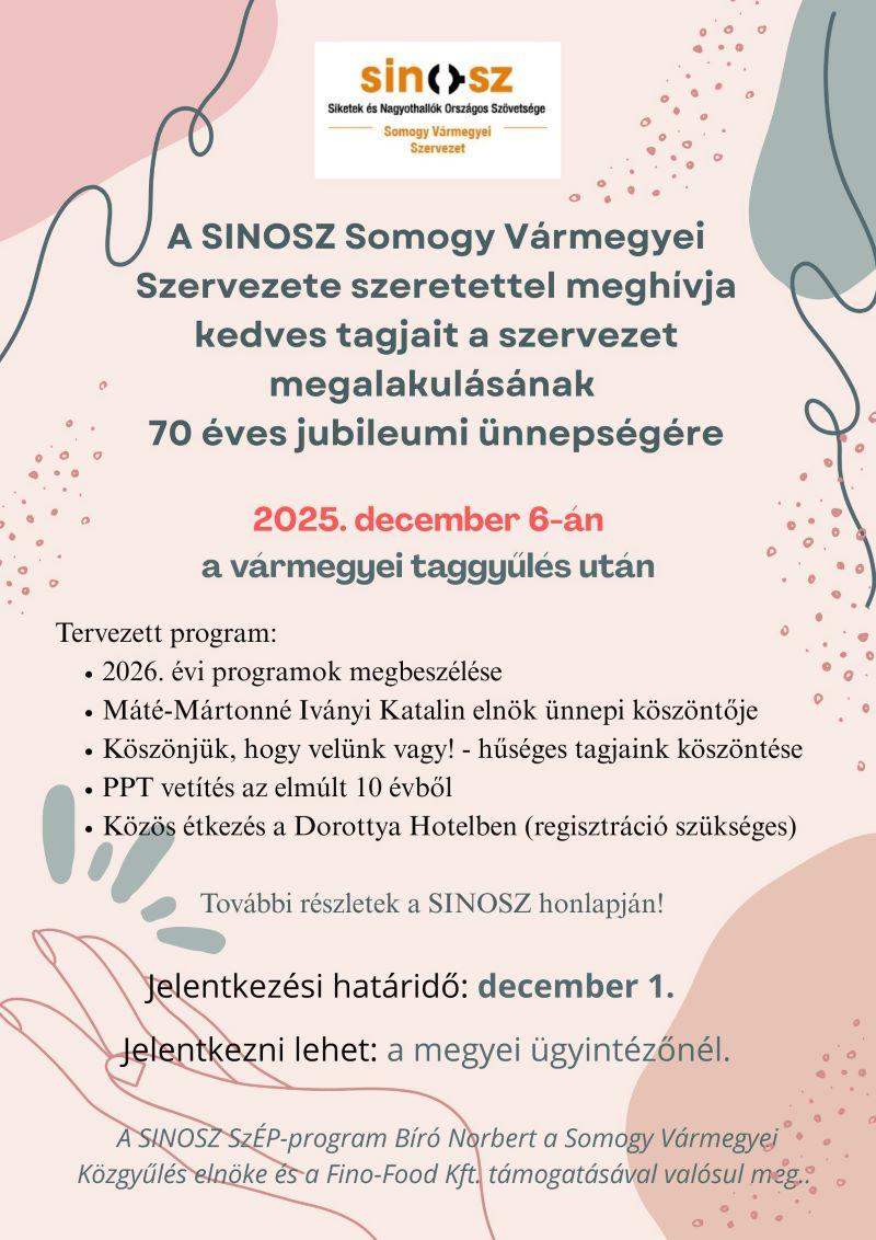 Ünnepeljük együtt a SINOSZ Somogy Vármegyei Szervezet alapításának évfordulóját!