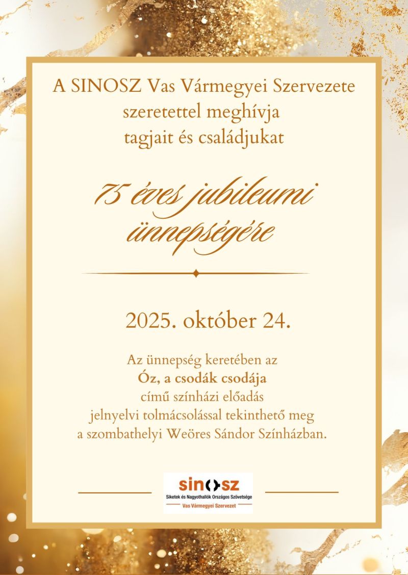 Megalakulásának 75. évfordulóját ünnepli a SINOSZ Vas Vármegyei Szervezete 2025. október 24-én.