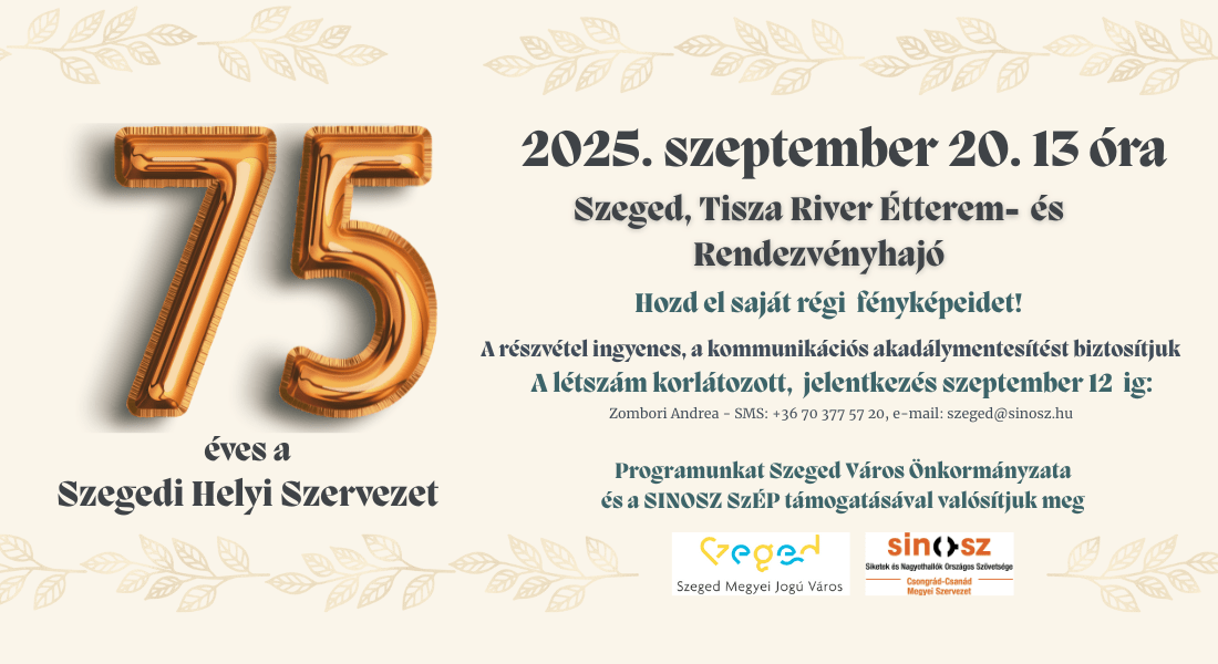 Rendezvényünket Szeged Város Önkormányzata és a SINOSZ SzÉP támogatásával valósítjuk meg, jelnyelvi tolmácsolással.