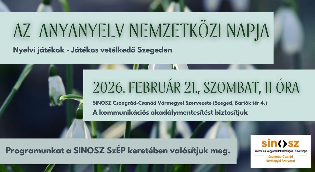 Helyszín: a SINOSZ Csongrád-Csanád Vármegyei Szervezete – Szeged, Bartók tér 4. (18-as kapucsengő)