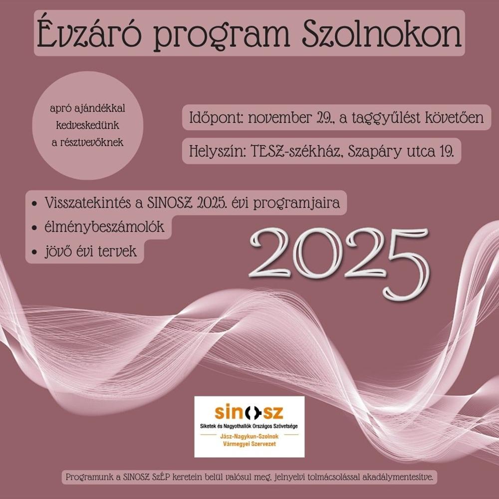 A programon mindenki megoszthatja emlékeit és tapasztalatait a SINOSZ 2025. évi programjairól, tekintsünk vissza közösen az idei év eseményeire! Lehetőség nyílik új ismeretségek kötésére, valamint a jövő évi tervek, ötletek megbeszélésére is. Várunk minden tagot és érdeklődőt szeretettel.