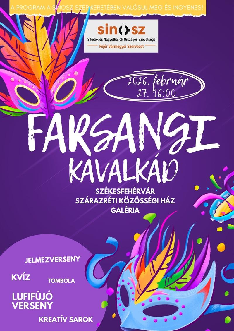 A Farsangi Kavalkád a SINOSZ SzÉP-program keretében valósul meg, és a részvétel ingyenes.