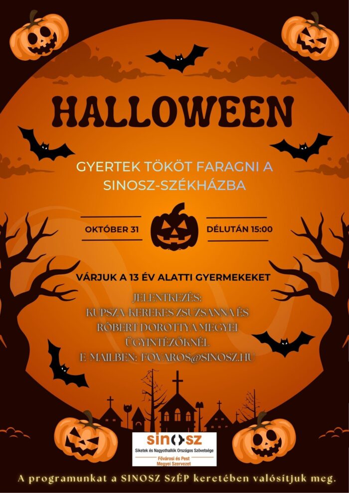 2025. október 31-én, pénteken, 15:00-18:00-ig, a SINOSZ-székház gyerekszoba melletti helyiségében (kerti átjáró).
