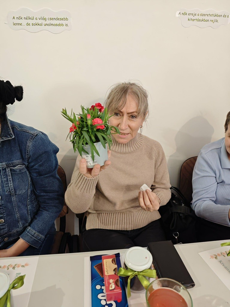 Elnökünk, Böröcz Attila és elnökségi tagunk, Kasza Menyhért köszöntötték a programon résztvevőket, különösen a megjelent hölgyeket, megköszönve nekik, hogy a szervezet életében is nélkülözhetetlen helyet foglalnak el. Hölgytagjainkat több, apró meglepetéssel vártuk. Elnökségünk férfi tagjai készítettek előzetesen egy-egy ajándékot: virághagymát ültettek el kis cserepekben, melyeket díszszalaggal átkötöttek és egy nőnapi képeslappal együtt nyújtottak át az elnöki köszöntő után. Ezt követően egy játék során virággal is kedveskedtünk a hölgyeknek: mindenki húzott egy számot, majd az ahhoz tartozó, előre sorszámozott virágot kapta meg. Így valóban meglepetés volt, hogy kinek melyik jut. A nap hátralévő része beszélgetéssel, a következő programok megvitatásával zárult.