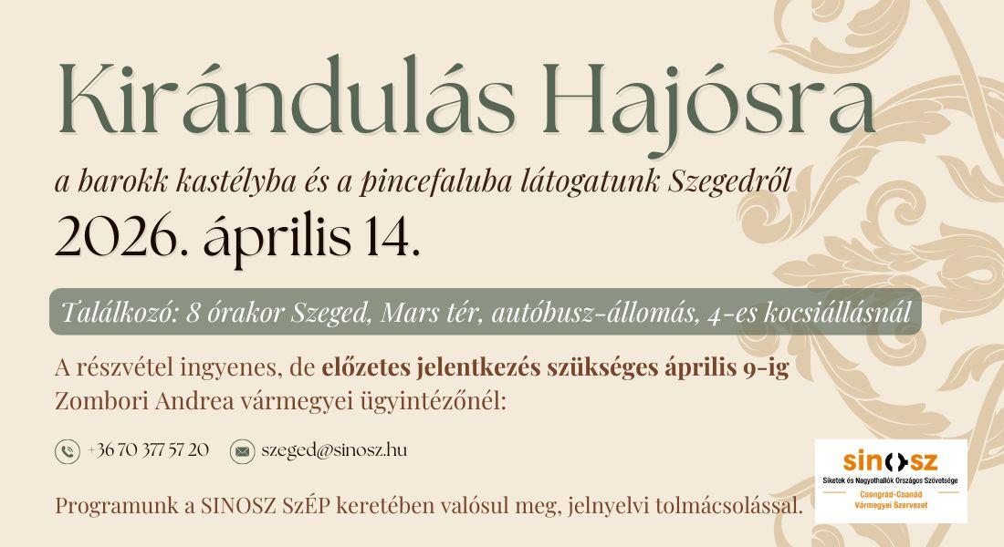 Szeretettel várunk minden érdeklődőt a SINOSZ Csongrád-Csanád Vármegyei Szervezet programján, melynek időpontja: