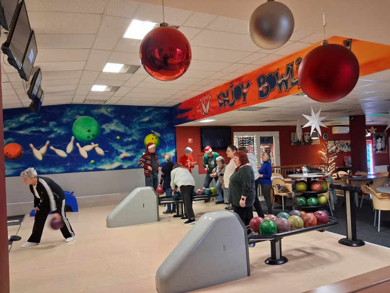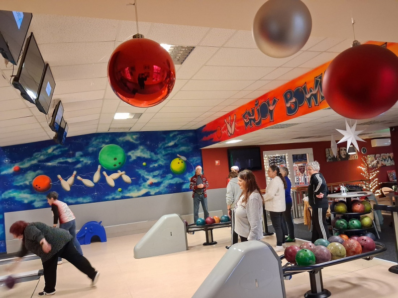 Néha érthetetlen módon, az utolsó méteren kerülte el a golyó a bábukat, ám összességében nagyon jól ment mindenkinek a gurítás. Buzdították egymást a játékosok is, jöttek szurkolni is néhányan, sütik, csokik, cukorkák adták az energiát a résztvevőknek – mindenki hozott valamilyen finomságot, cseréltük a sütirecepteket.