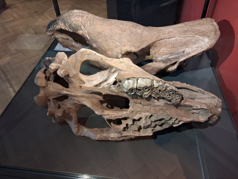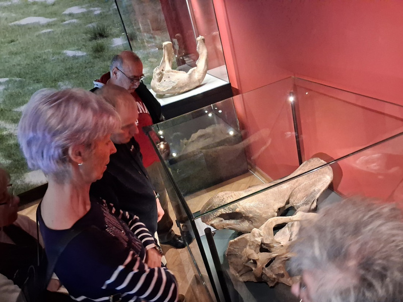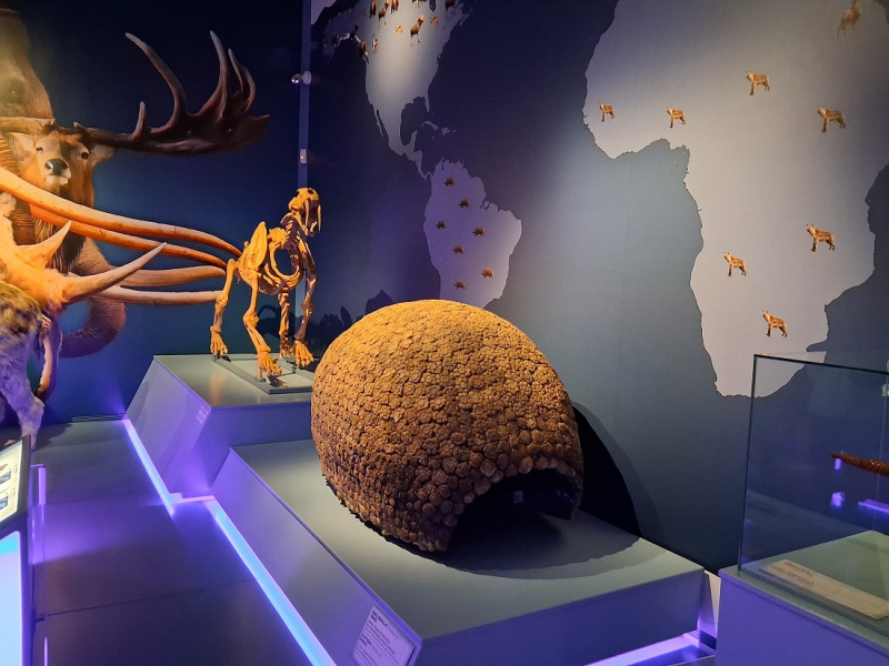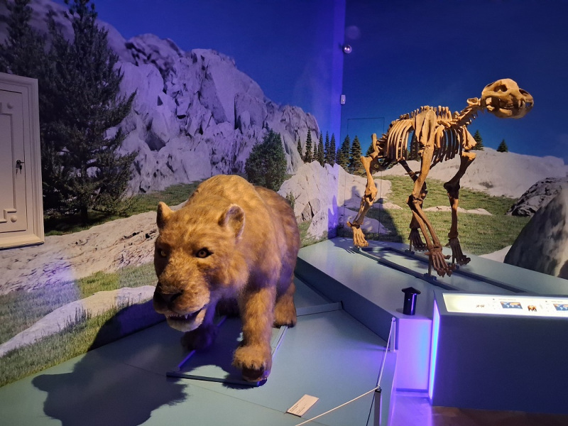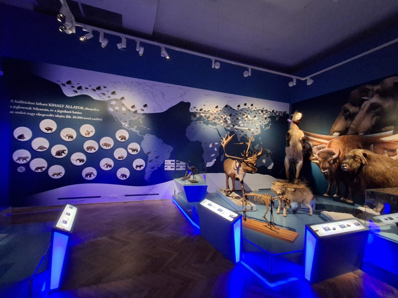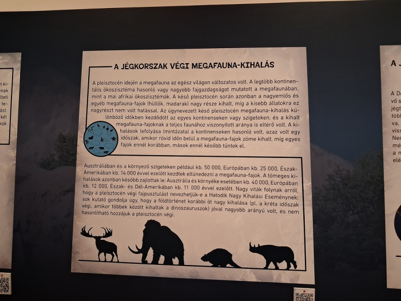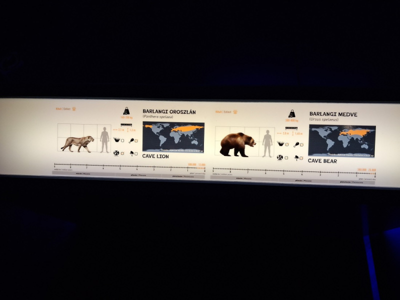 A következő kiállítótérben hatalmas térképen láthattuk azt, hogy a már kihalt állatok a jégtakaróhoz viszonyítva mely területeken éltek, hogyan vándoroltak, milyen körülményekhez tudtak alkalmazkodni. Láthattunk olyan rekonstruált állatokat – vagy koponyájukat, csontvázukat –, amelyek kihaltak, nem élnek ma hozzájuk hasonló fajok, állatok, viszont a ma is megtalálható állatok jegyeit, tulajdonságait különösen érdekes összehasonlításokban ismerhettük meg.