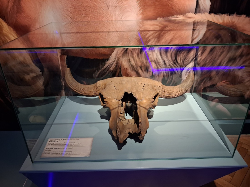 Látványos része a kiállításnak a díszteremben található csontvázak gyűjteménye. Jellegzetes tulajdonságokról árulkodnak a csontvázak, megmutatják az állatok testalkatának alapját, életmód szerint is láthatjuk a különbségeket – a mamutbébin kívül látványos a csontok, a fogak nagysága, állapota.