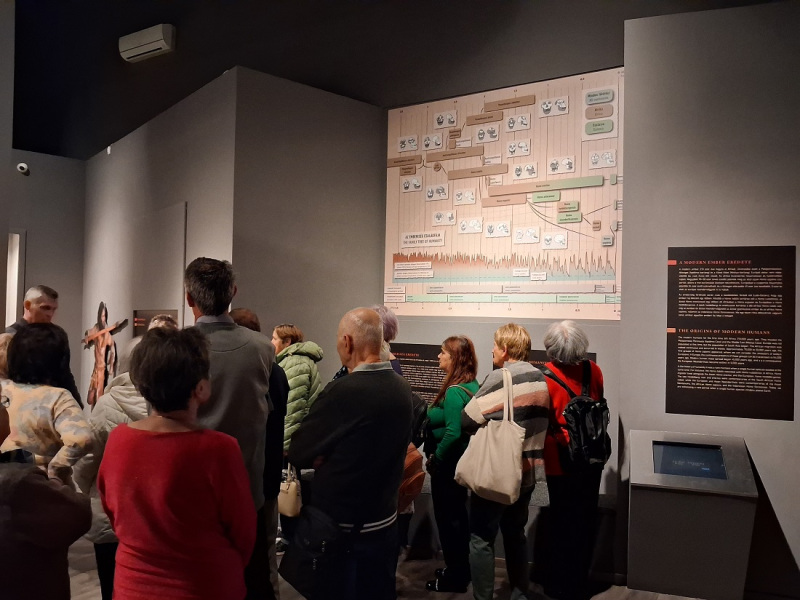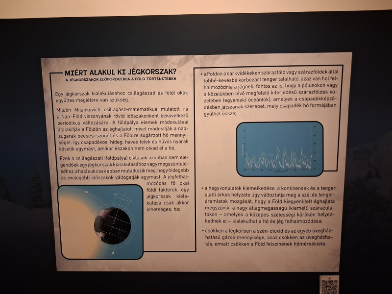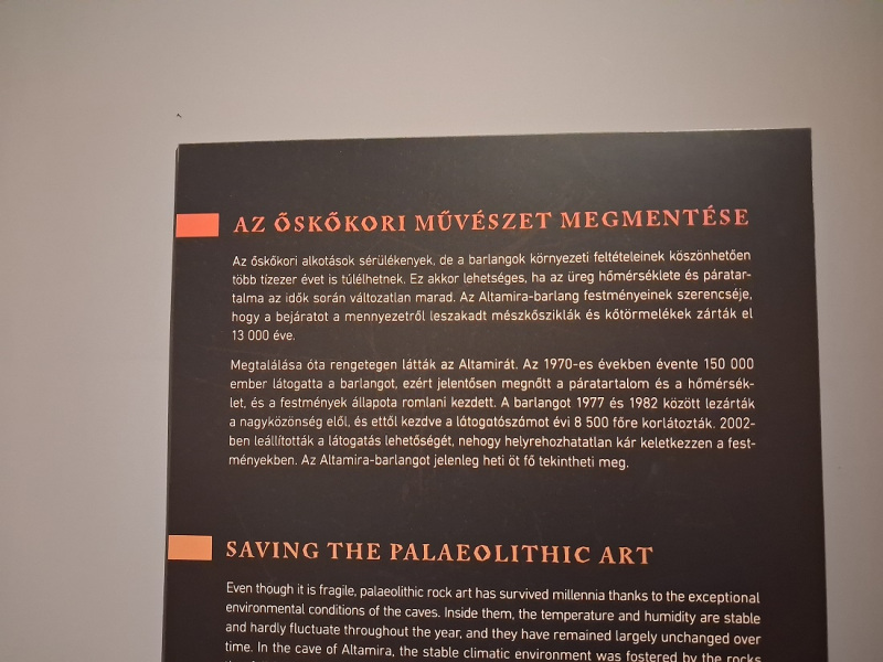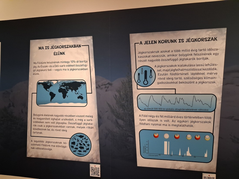A kiállítás valóban interaktívnak mondható. Tökéletes élményt és a tudnivalók megismerésének legjobb változatát biztosítja, ha idegenvezetővel járjuk be a kiállítást. Hatalmas mennyiségű, igazán érdekes, különleges információkat kaptunk Zsikétől: mint máskor, most is élvezettel adta át mérhetetlen nagy tudását nekünk. Ha valaki nem azt a megoldást választja, hogy végig idegenvezető kalauzolja őt, a sok grafika, információs anyag, QR-kódokon keresztül elérhető tájékoztatók által is komoly betekintést kap a jégkorszak részleteibe. Hatalmas ismeretanyag jeleníti meg az ember életének fejlődését a kezdetektől haladva napjainkig. Az Altamira-barlangban található, ma értékes leleteknek számító őskori alkotásoktól a napjainkban látogatható, látható másolatig hatalmas utat jártunk be, bolygónkon is több korszak sok változást hozott, életkörülményeink alakulása szükségszerű megoldásokba kényszerített minket.