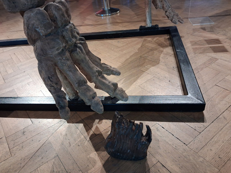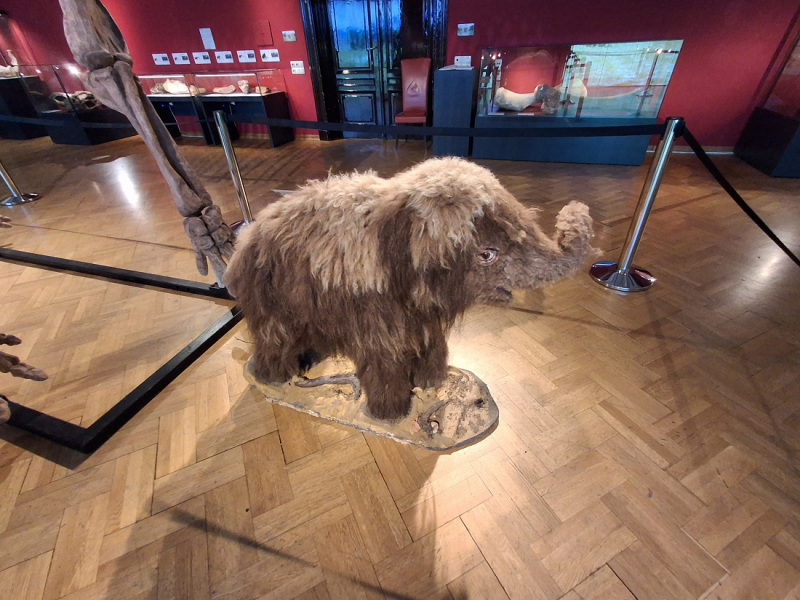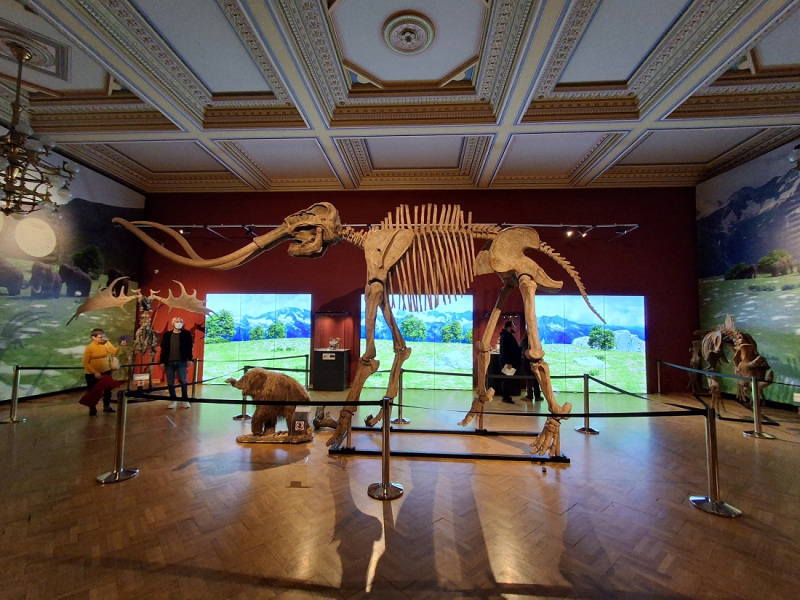 A múzeum épülete előtt hónapok óta látványosan mozgó mamut köszönti az arra járókat, alatta áthaladva, a lábnyomokat követve jutunk a múzeumba.