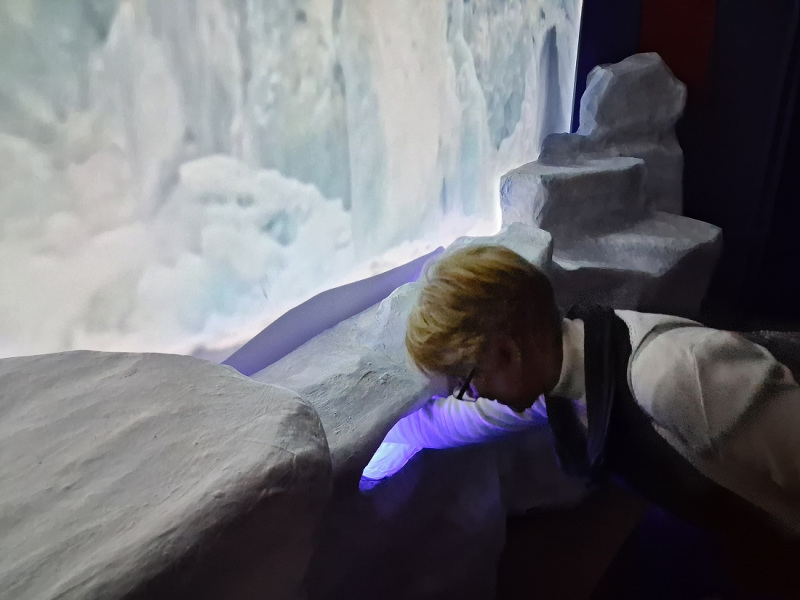 Pár perces ízelítőt kaptunk a jégkorszak extrém hideg körülményeiből, az itt tapintható jég másodpercek alatt lehűtötte kezünket, amikor megfogtuk. Jó érzés tudni, hogy nem kell ma már megküzdenünk a kiállítás által bemutatott korszak zord életkörülményeivel.