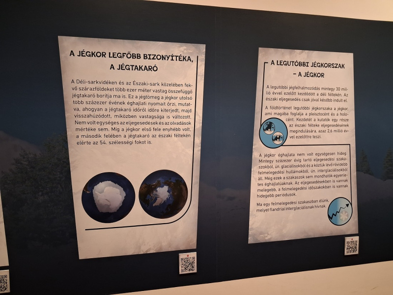 A kiállításon A titokzatos jégkorszak című egység a jégkorszak állatvilágát mutatja be, A jégkori ember című egység a régen élt elődeink mindennapjait mutatja be, a harmadik egység pedig azt szakaszt jeleníti meg, amelyben jelenleg is élünk – nem is sejtettük, hogy valójában több jégkorszak részeként változik az időjárás, a Föld klímája. Sokszor emlegetik a klímaváltozást, a globális felmelegedést – mint idegenvezetőnktől megtudtuk, sajnos valóban mi is hozzájárunk ehhez, de természetes folyamatként is állandó a hidegebb, melegebb időszakok váltakozása.